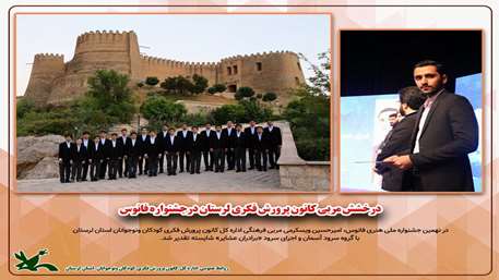 دراین آیین، امیرحسین ویسکرمی مربی فرهنگی اداره کل کانون پرورش فکری کودکان ونوجوانان استان لرستان با گروه سرود آسمان و اجرای سرود «برادران عشایر» در این بخش شایسته تقدیر شد.